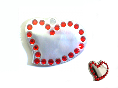 Medalion inima din aluminiu ultra dur cu pietre rosii Swarovski ,30 mm x 24 mm - cod produs 510