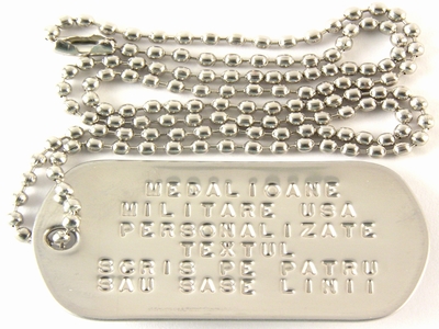 1. Placuta de identificara militara armata SUA "dog tag" personalizata cu textul dorit de client .